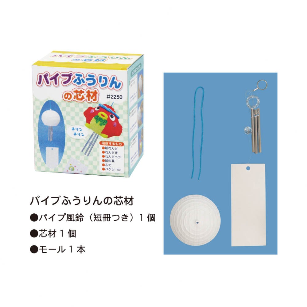 紙粘土で金属パイプの涼しい音が鳴るオリジナルの風鈴ができる芯材セットです。