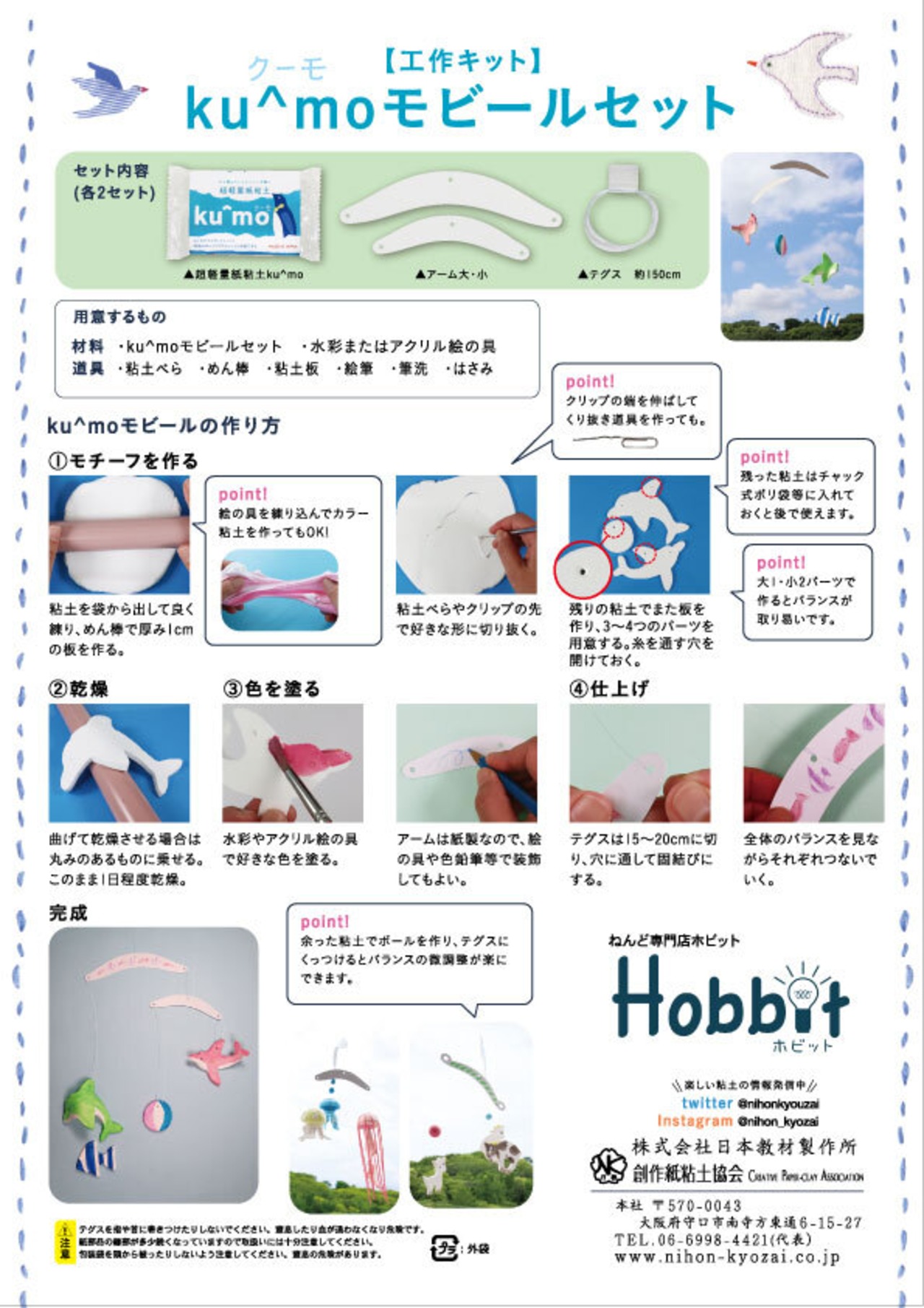 超軽量紙粘土クーモとモビールを作るための部品が2セット入ったお特な工作キット第1弾です。
